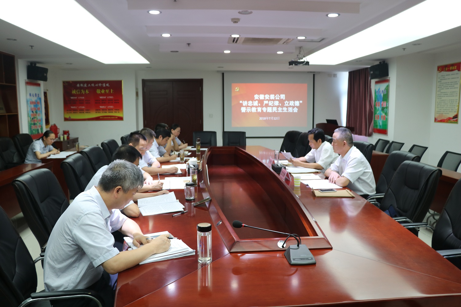 根據(jù)集團(tuán)公司黨委關(guān)于“講忠誠、嚴(yán)紀(jì)律、立政德”專題警示教育統(tǒng)一部署,按照《安徽安裝公司關(guān)于以魯煒案徽商集團(tuán)窩案等案件為反面教材開展“講忠誠、嚴(yán)紀(jì)律、立政德”專題警示教育的安排意見》要求,7月12日下午,安徽安裝公司黨委召開“講忠誠、嚴(yán)紀(jì)律、立政德”警示教育專題民主生活會。集團(tuán)公司黨委副書記牛曙東,紀(jì)委副書記、紀(jì)檢監(jiān)察室主任龔志酬到會指導(dǎo)。會議由公司黨委書記、副總經(jīng)理胡六中主持,公司領(lǐng)導(dǎo)班子成員參加會議。