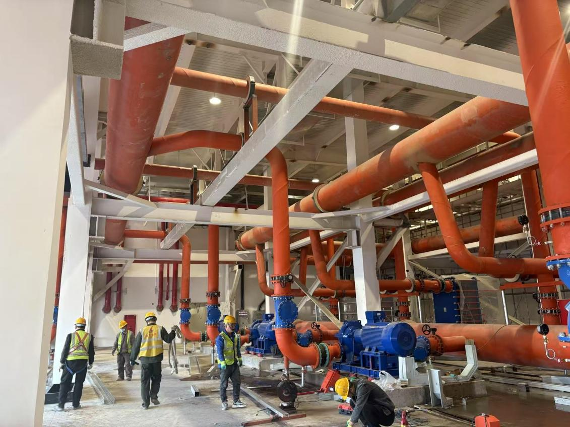 自一季度以來,項目部以“2025開局即決戰(zhàn)”的昂揚斗志,迅速掀起“大干快上”施工熱潮。對各車間、各系統(tǒng)剩余工程量展開全面梳理統(tǒng)計,同時針對剩余工程量堅持每日召開專題會,以倒排計劃為“發(fā)令槍”,對照時間節(jié)點要求各班組加班加點、不折不扣完成。截至發(fā)稿,車間一大面積施工基本完成,形象進度完成約96%;車間二形象進度完成約90%;車間四形象進度完成約92%;站房一各設備管道基本安裝完成,正在調試中,形象進度完成約90%。目前,各車間工藝生產均已進場,燃氣鍋爐點火成功、空壓站完成試運行、工藝24h冷凍水、恒溫恒濕空調均已投入使用;各車間工藝區(qū)送電已到位、供水完成。