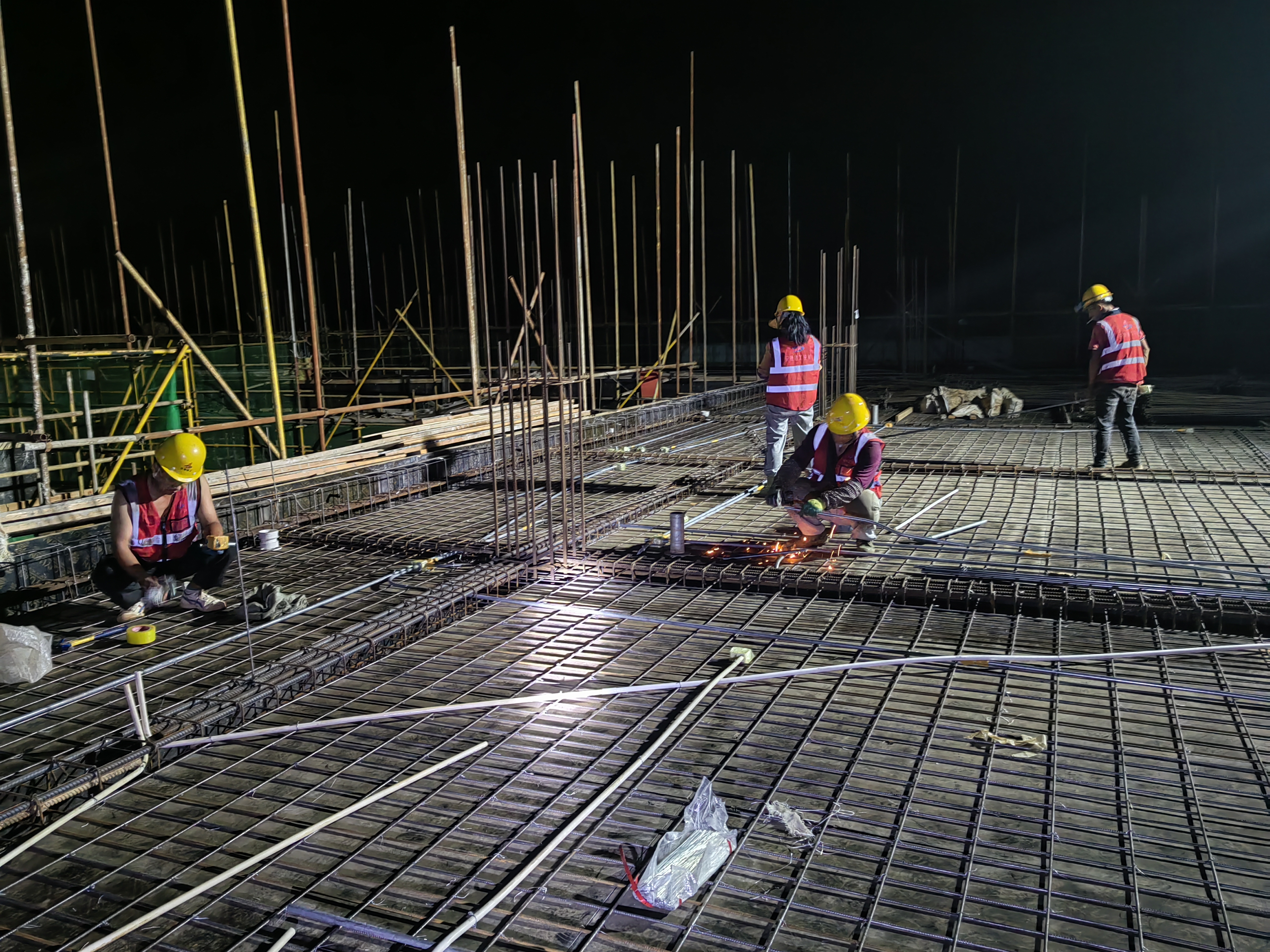 秋夜漸涼,建工安裝公路公司涇青高速房建項目水電安裝現場卻熱度不減。為保次日混凝土澆筑,桃花潭服務區綜合樓等單體預埋面施工從晨霧干到星光;雨幕下,挖掘機揮臂,工人披雨衣揮鐵鍬進行施工管道墊層。反光背心穿梭,切割機,切割機金芒四濺,轟鳴與汗雨交織成一夜酣戰。